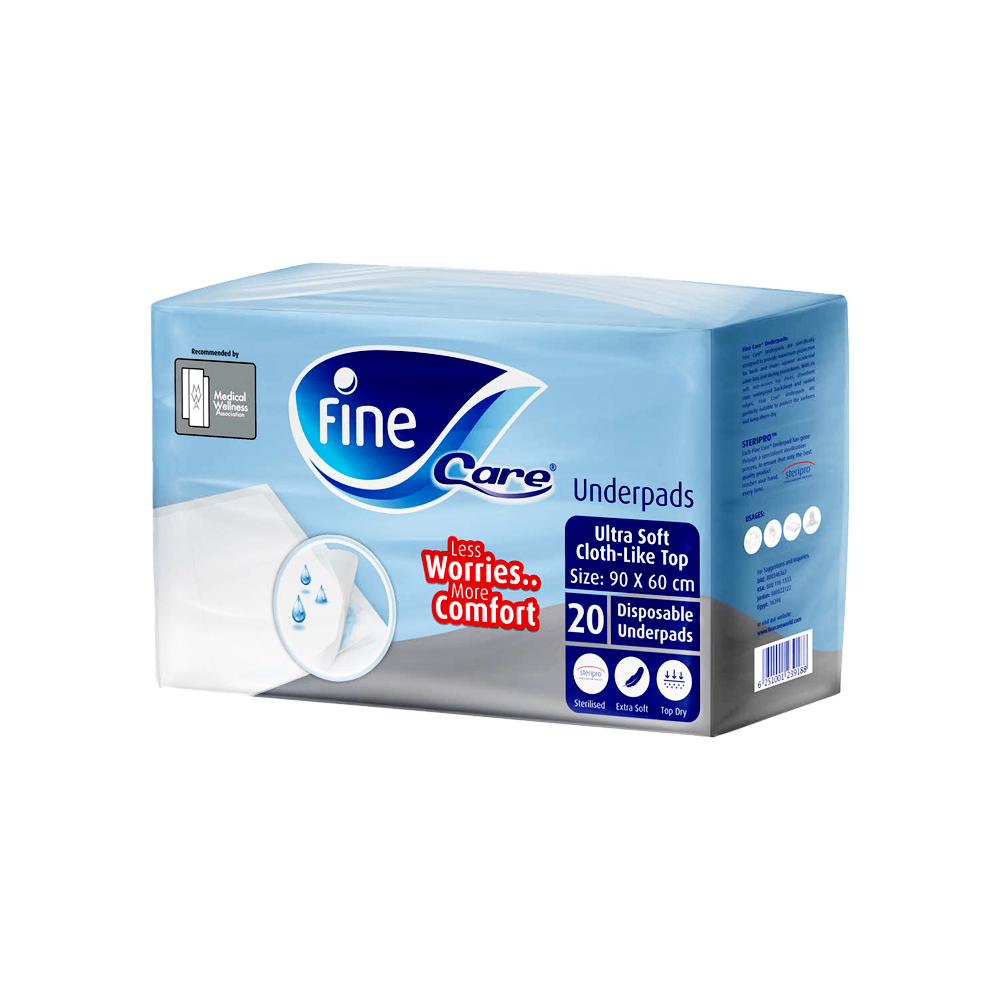 فاين كير مفارش للسرير 90 في 60 سم 20 حبة-FINE CARE UNDERPADS 90X60 CM 20''